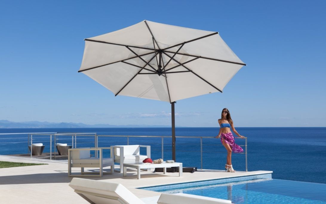 The patio umbrellas come with sleeves to be cemented into the ground, or with a deck mount plate that has a thick aluminum plate to be fixed on the surface to reinforce their strength. They have an easy tilt system and a crank opening that can make them rotate at 360 degrees to ensure that you get the shade in any direction, covering your patio and everybody on it from the hot sun. Their freestanding base offers an added space in front of the canopy since all weight is offset to the back. This freestanding base is designed to accept concrete pavers measuring 20 inches by 20 inches to ensure the mast is firmly fixed on the surface.