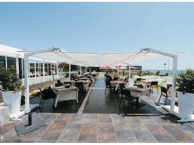 Many hotels, resorts, and patio restaurants are seeing the value and dramatic impact of our unique “Giant” patio umbrellas. Blending German engineering and European craftsmanship our Giants truly stand out. Sizes range up to 400 square feet and are available in octagon, square, or rectangle.