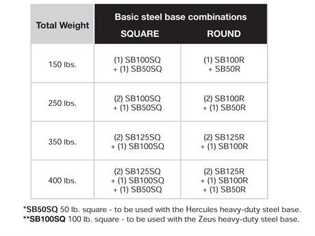 | - | Galvanized steel internal mast stem/powder coated base plate included | |